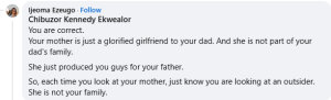 A Facebook user, Chibuzor Kennedy Ekwealor, has stirred controversy by claiming that a wife is not truly a part of a man’s family but rather a “glorified girlfriend.”....KINDLY READ THE FULL STORY HERE▶