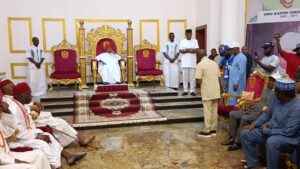 Oshiomhole, who introduced his team and thanked the people of Uzairue for their continuous support, pleaded with His Highness to grant blessings to his aspiration and that of other APC candidates, from Asiwaju Bola Tinubu for president to its House Reps candidate and finally the House of Assembly candidate.