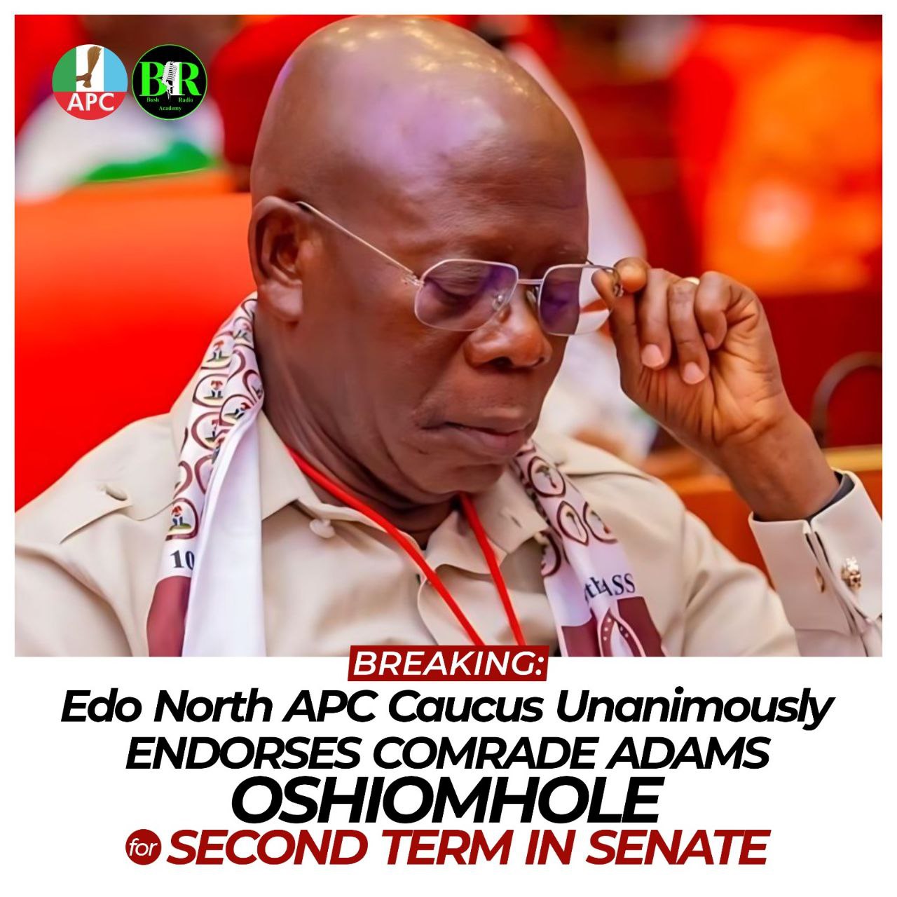In a thunderous display of unity and political direction, leaders of the All Progressives Congress (APC) from Edo North Senatorial District have unanimously endorsed Comrade Adams Aliyu Oshiomhole for a second term in the Nigerian Senate—effectively closing the door to internal contestation within the party.