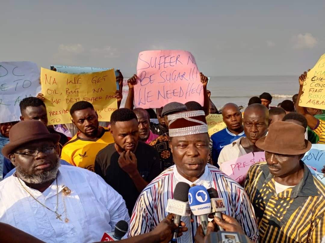 Protesters, wielding placards bearing messages such as “We are a peaceful people and do not envisage a breakdown of law and order,” “Save Sangana Kingdom from the ravaging sea encroachment,” and “We produce the black oil of the nation and deserve better,” passionately called for urgent action to protect their community from the threat of erosion.