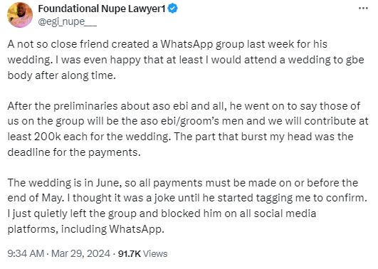 Lawyer Exits WhatsApp Group Following Friend’s Request For 200k Contribution A Nigerian attorney has recently shared his decision to leave a WhatsApp group after the groom,...