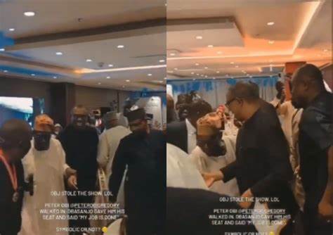 Former Nigerian President Olusegun Obasanjo abandoned his seat and gave it to Presidential challenger Peter Obi, a move considered symbolic by Obi supporters. The video begins...