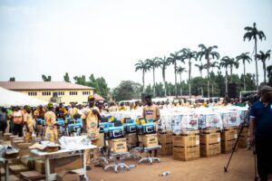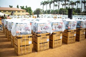 See wetin e do oh, he distributed 200 minibuses, three ambulances for the three local governments (Ikeja, Ojodu, and Onigbongbo), three buses for religious bodies, 18 tricycles distributed across the Federal Constituency’s 18 wards, nine security patrol vehicles, various empowerment materials and food items, and, of course, cash FOLLOW.