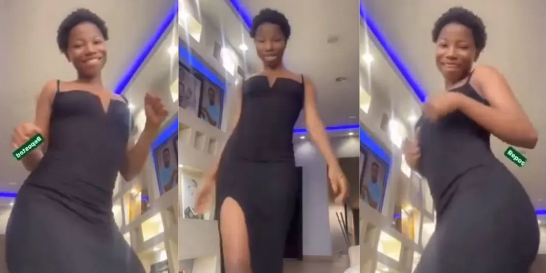 In the latest viral video, Emmanuella is seen wearing a long gown that exposes a significant part of her leg, sparking further discussions about the appropriateness of her attire. The video captures her dancing, catwalking, and revealing curves, with the dress drawing attention to her bosom cavity.