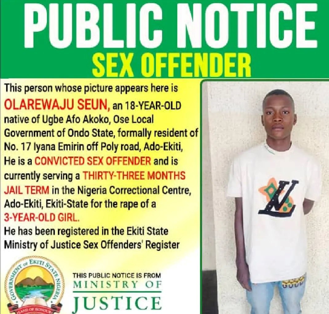 Convicted Rapist listed In Ekiti Sex Offenders Register For Raping 3-year-Old Girl....KINDLY READ THE FULL STORY HERE▶
