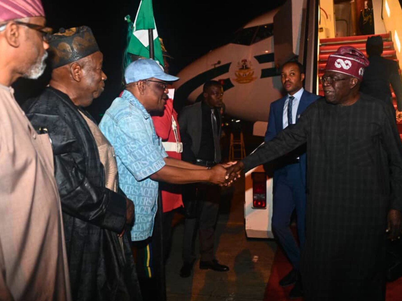“Daddy Oyoyo”: Excitement Sweeps Abuja As President Tinubu Touches Down After Germany Summit; Warm Welcome From Wike, Gbajabiamila, Ganduje, And Other Dignitaries – Exclusive Photos