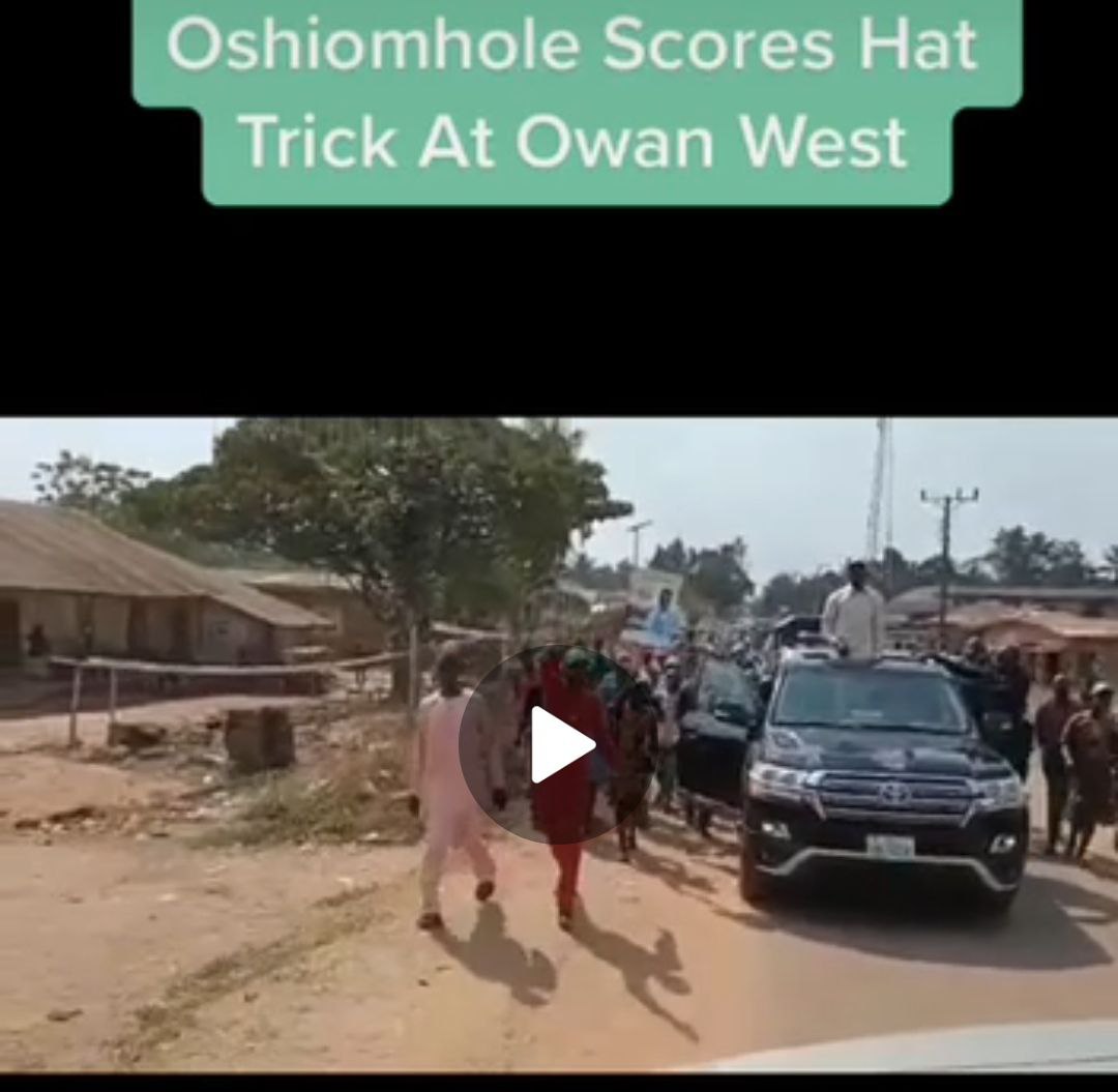 His Hat Trick was a thunderous left foot kick that left the defence flat. Oshiomhole earned their trust and was led out of town by the residents in a heartwarming occasion.