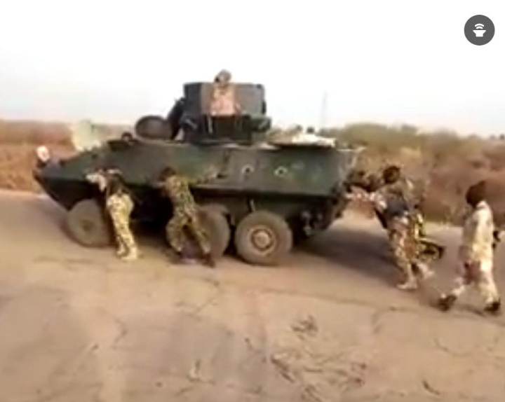 Fuel Subsidy: Outrage Erupts As Soldiers Captured Pushing Armored Tank Amid Crisis- Catch It On Video