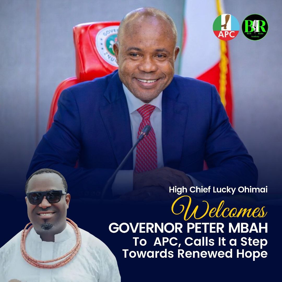 According to High Chief Lucky Ohimai, Governor Mbah’s decision to join the APC shows courage, foresight, and a commitment to national unity under President Bola Ahmed Tinubu’s Renewed Hope Agenda.