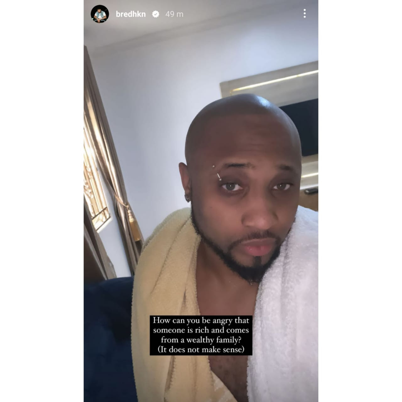 Singer and son of Osun state governor, BRed, has taken to his Instagram handle to ask why people get angry when someone is rich and comes from a wealthy family. According to him, it doesn’t make sense.....KINDLY READ THE FULL STORY HERE▶
