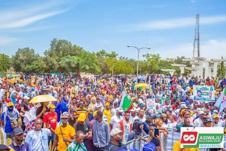 The massive crowd was seen having a great time at the Unity Fountain, with some proudly eating Agbado while spreading the word about Tinubu’s candidacy.