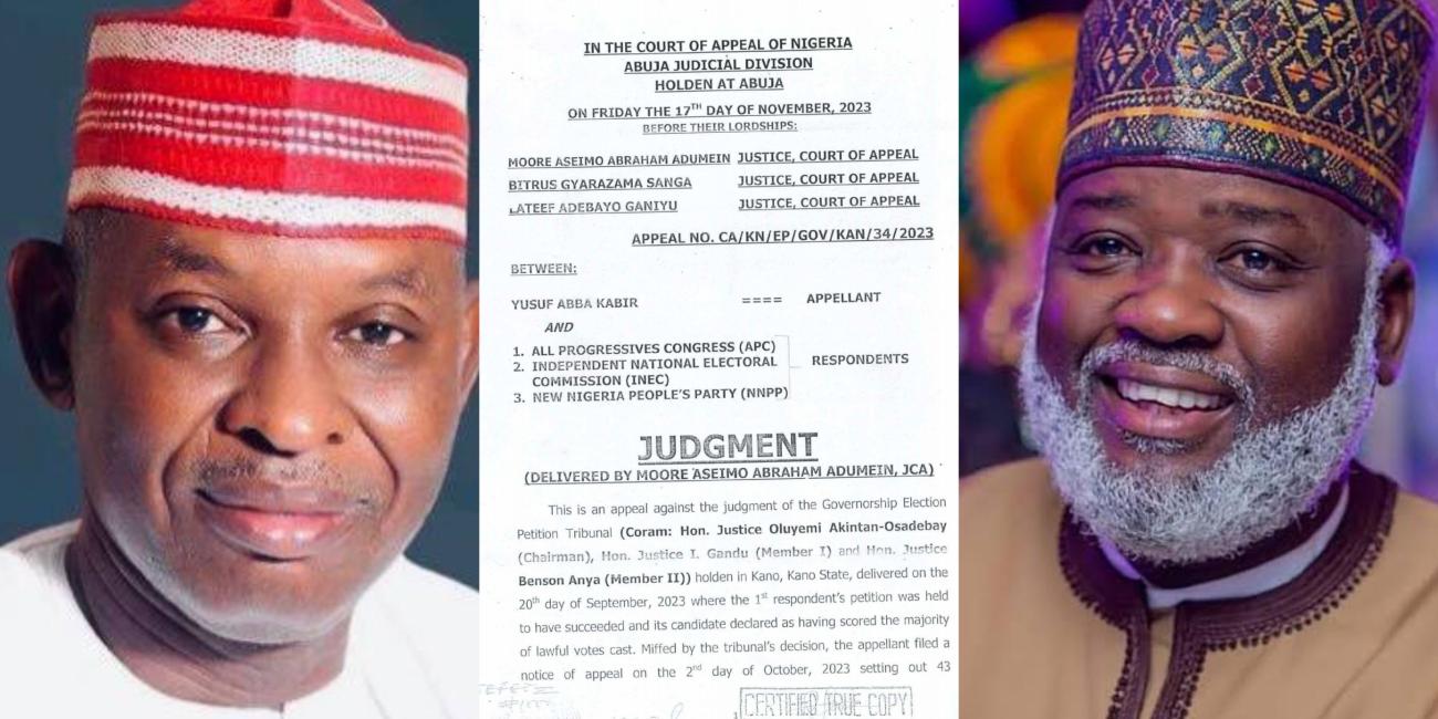 The tribunal had earlier on September 20 nullified Yusuf’s victory, declaring APC candidate Nasiru Gawuna as the winner of the March 18 election. In the certified court documents, Yusuf Abba Kabir appealed, while APC, Independent National Electoral Commission (INEC), and New Nigeria Peoples Party (NNPP) were respondents.
