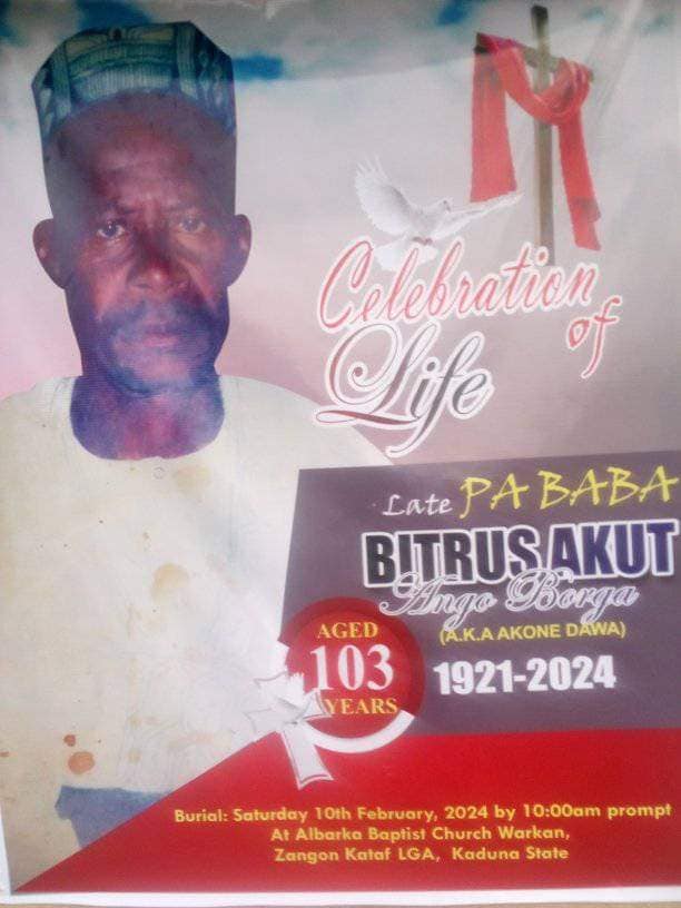 At the age of 103, Bitrus Akut held the distinction of being the oldest resident in the village, leaving behind a legacy of resilience and love. His life was celebrated on February 10, 2024, during his funeral, where family and friends gathered to pay their respects. Mercy concluded her post, saying, “His memory lives on through his 12 children, 45 grandchildren, and many more great-grandchildren. Rest in peace, baba.