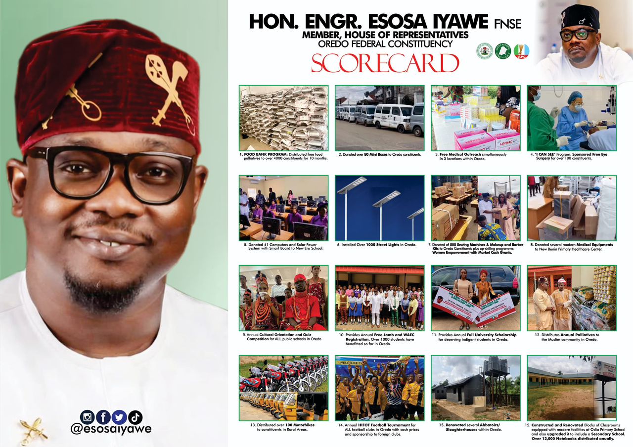 Judged by these standards, Hon. Engr. Esosa Iyawe’s record continues to present a compelling case for leadership and effective representation for the people of Oredo Federal Constituency.