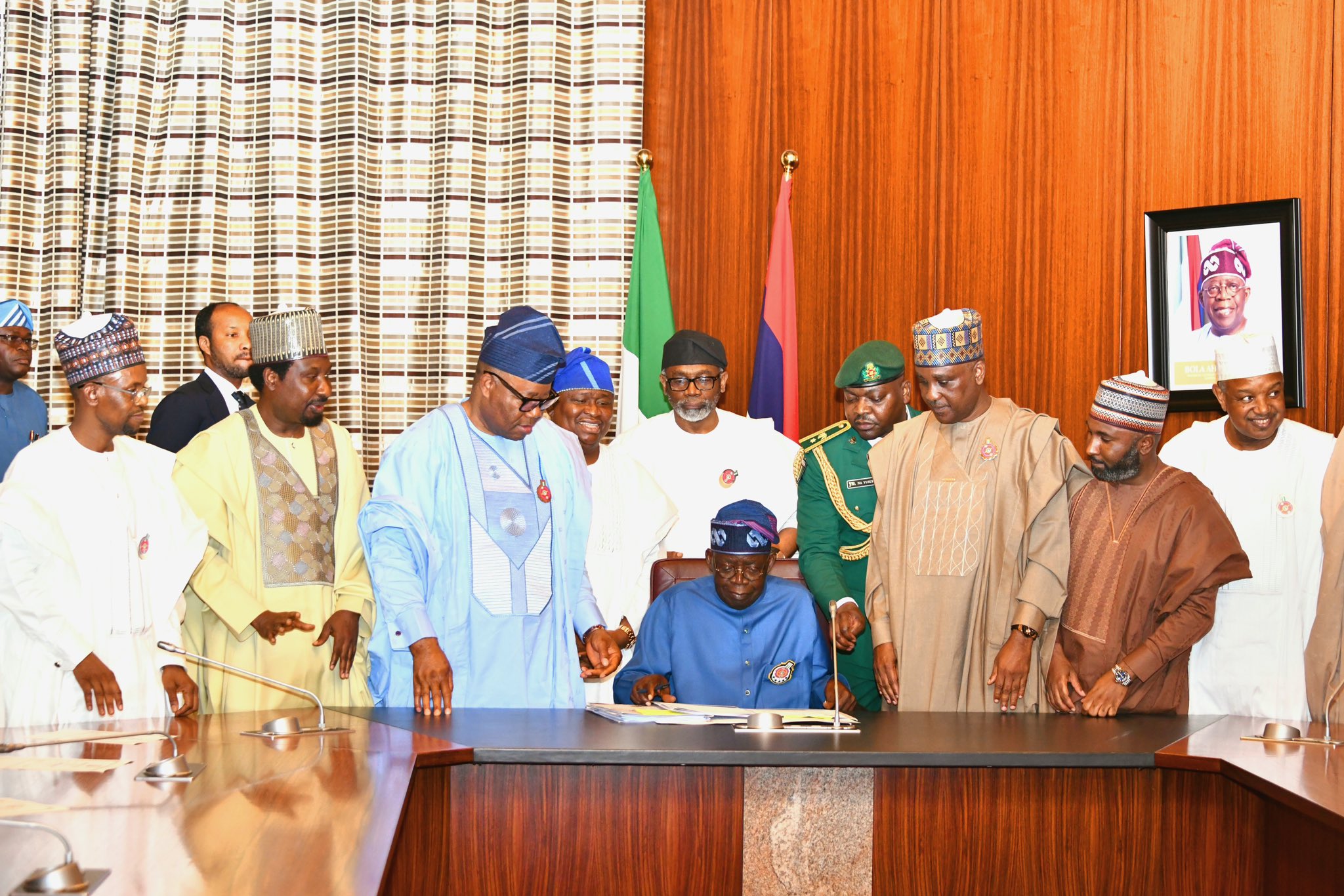 SP Akpabio, Speaker Abass, Ribadu, Badaru, Femi Gbajabiamila, And Others Present As Tinubu Signs N28.78tn 2024 Budget Into Law; Directs Payment For 400,000 NPower Beneficiaries