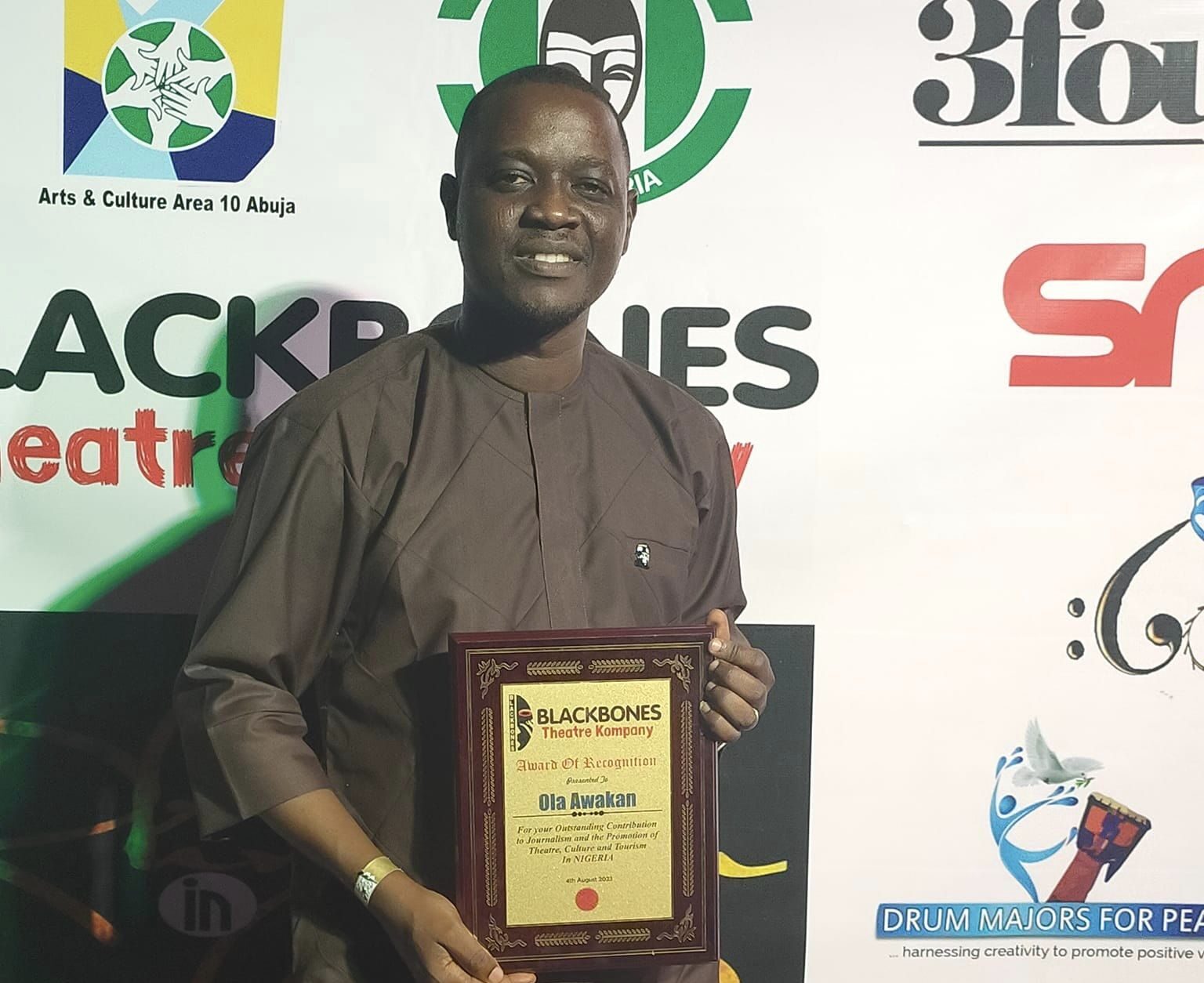 Renowned journalist Ola Awakan, a leading voice in Pan African journalism, received a prestigious award from the Blackbones Theatre Company for his exceptional contributions to the field.