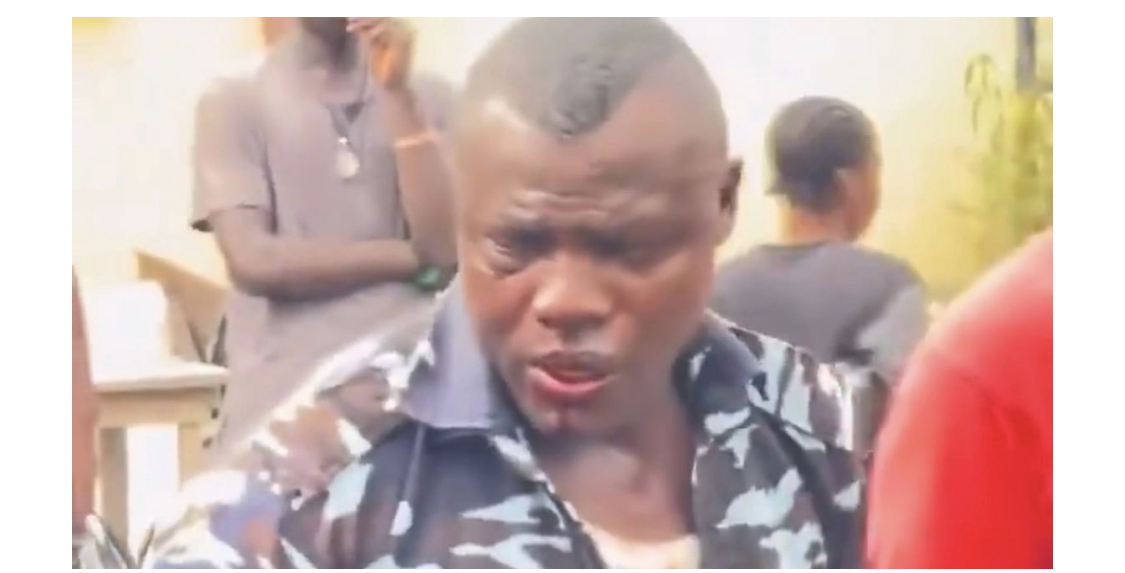 The video, which emerged on Wednesday, showed the officer with a swollen face and a bleeding nose, surrounded by members of the public shouting “ole” (thief).